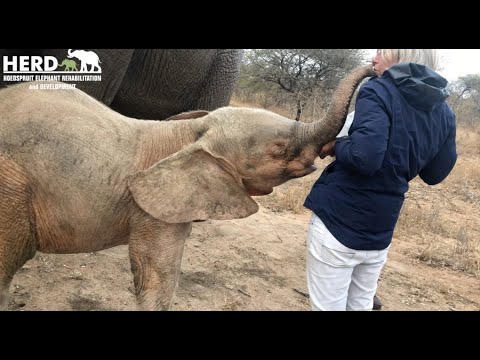 Orphaned elephant Khanyisa's morning bottle in the wild!